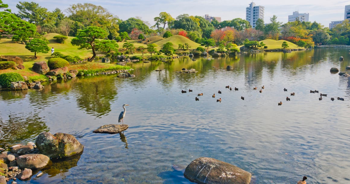 Vandaag hebben we de tijd om Kumamoto verder te ontdekken. We starten met een bezoek aan het indrukwekkende Kumamoto-kasteel, dat ondanks aardbevingen nog steeds een belangrijk symbool van de stad is. Daarna wandelen we door de prachtige Suizenji Jojuen-tuin, een traditionele Japanse landschapstuin met vijvers, bruggetjes en perfect onderhouden paden.